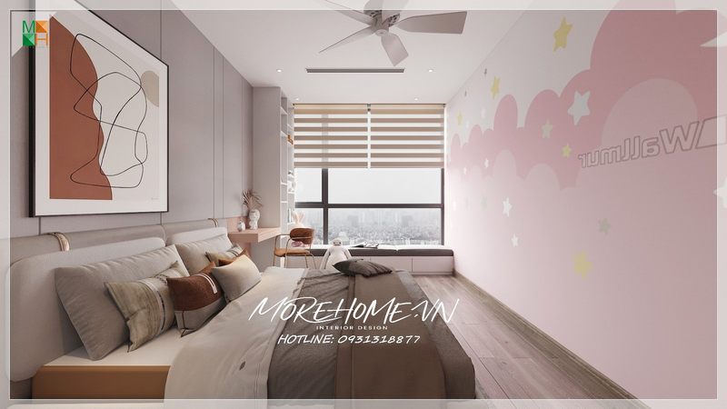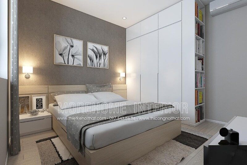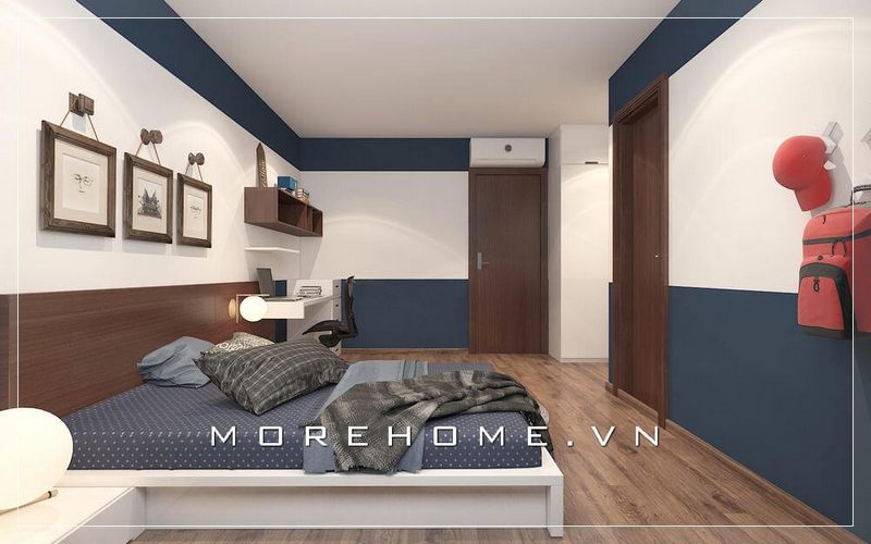 Mẫu thiết kế nội thất phòng ngủ chung cư Mandarin ấn tượng với sắc xanh nhẹ nhàng kết hợp nội thất hợp lí tạo nên một căn phòng ngủ lí tưởng.