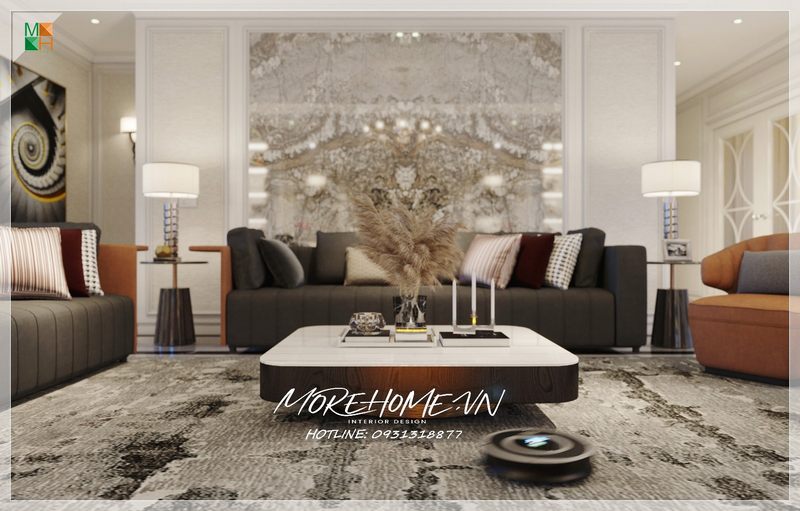 Bàn trà mang phong cách thiết kế hiên đại giúp không gian phòng khách trở nên tiện nghi và thân thiện mỗi khi có khách đến chơi nhà.